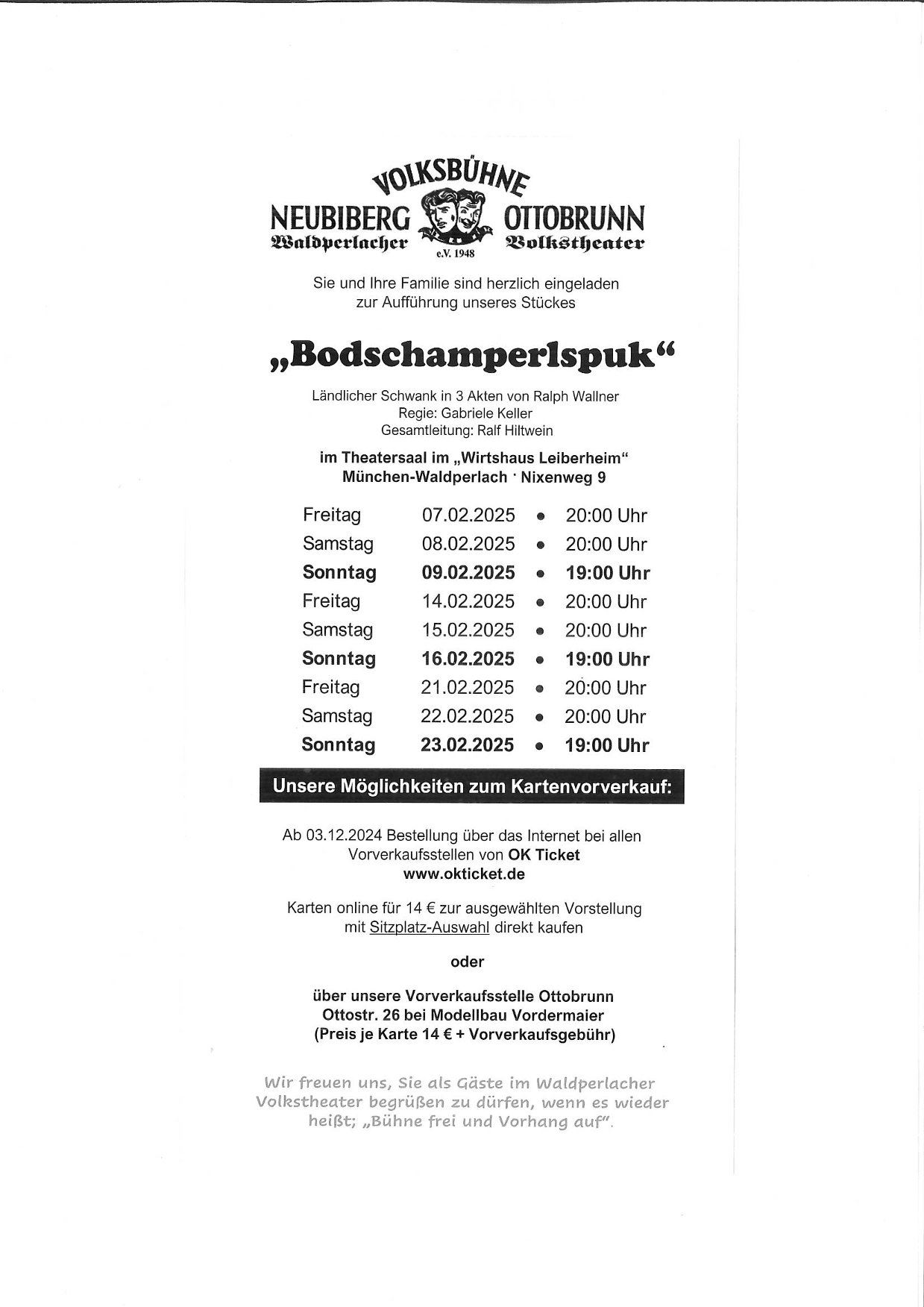 Kartenvorverkauf im Wirtshaus Leiberheim